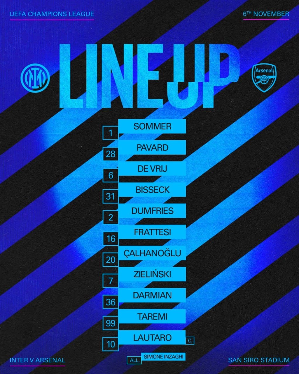 گفتنی است، مهدی طارمی مهاجم ایرانی اینتر در ترکیب اصلی این تیم برای بازی با آرسنال قرار گرفته است.