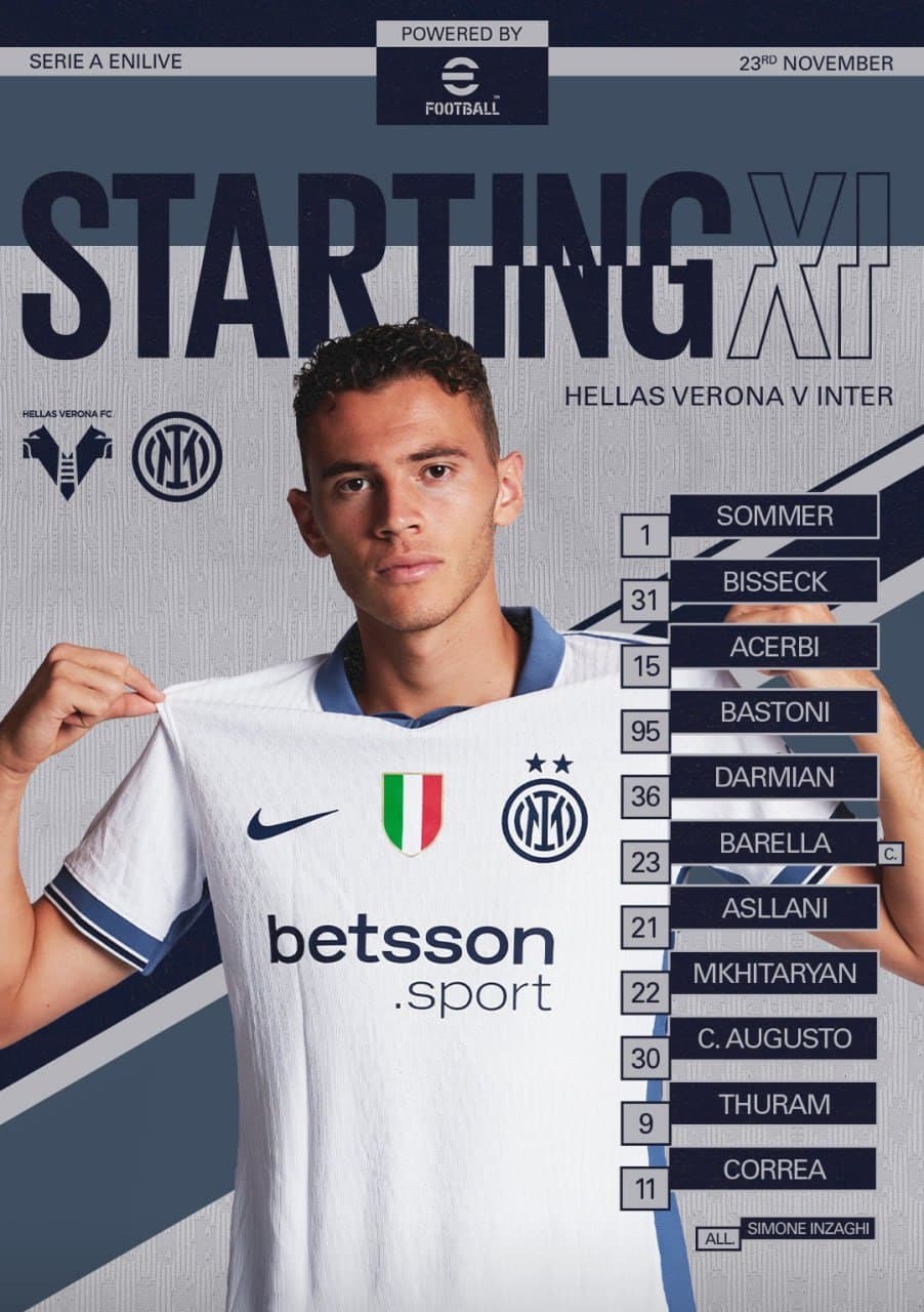 گفتنی است، مهدی طارمی مهاجم ایرانی اینترمیلان در ترکیب اصلی این تیم برای بازی با هلاس ورونا قرار نگرفته و نیمکت نشین است.