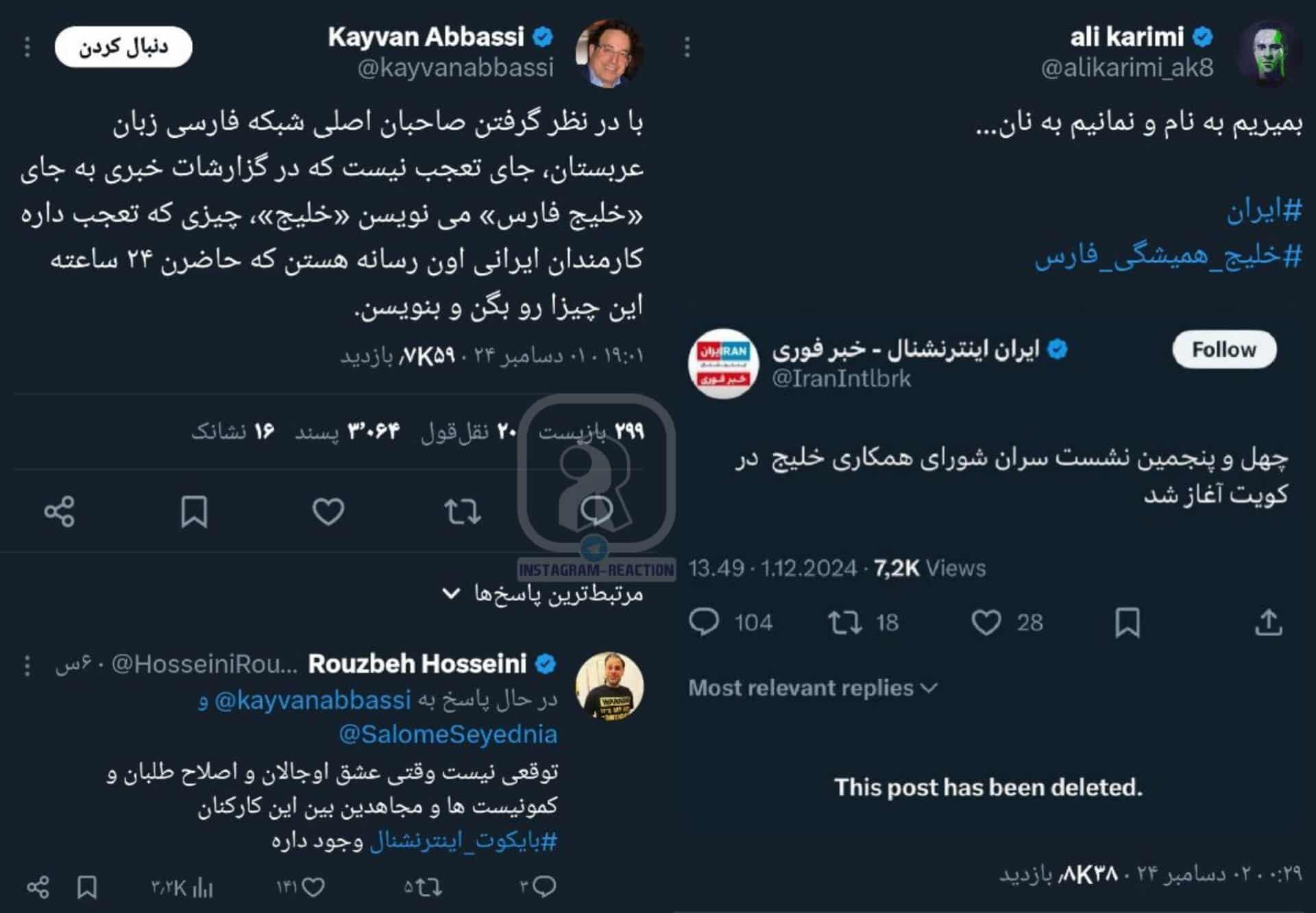 در این تصویر که در شبکه های اجتماعی فراگیر شده، علی کریمی که مدت هاست فعالیت های ضدایرانی اش را از آمریکا دنبال می کند از به کار بردن واژه ساختگی به جای «خلیج فارس» در شبکه ایران اینترنشنال عصبانی شد.
