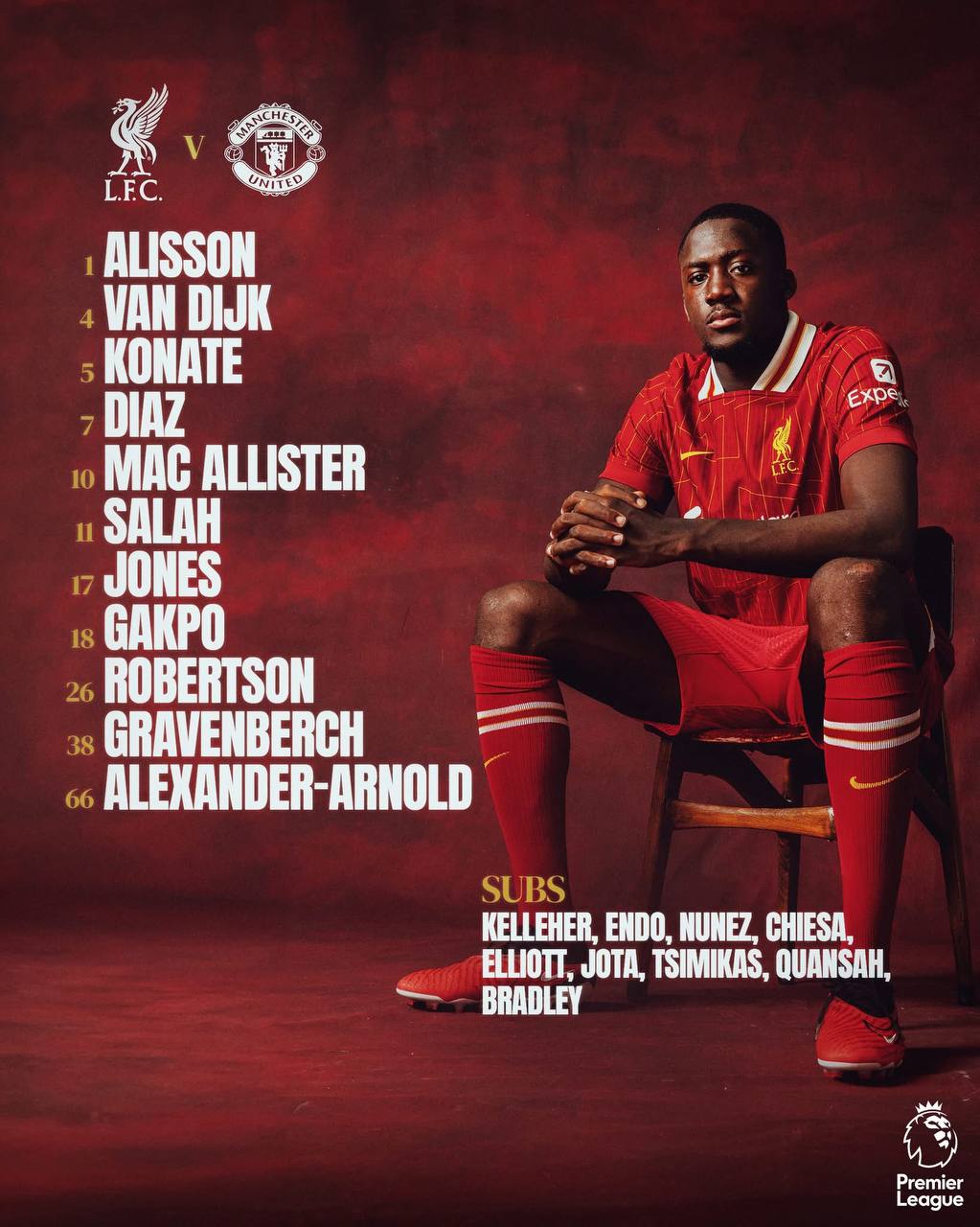 ترکیب اصلی لیورپول برای بازی با منچستر یونایتد