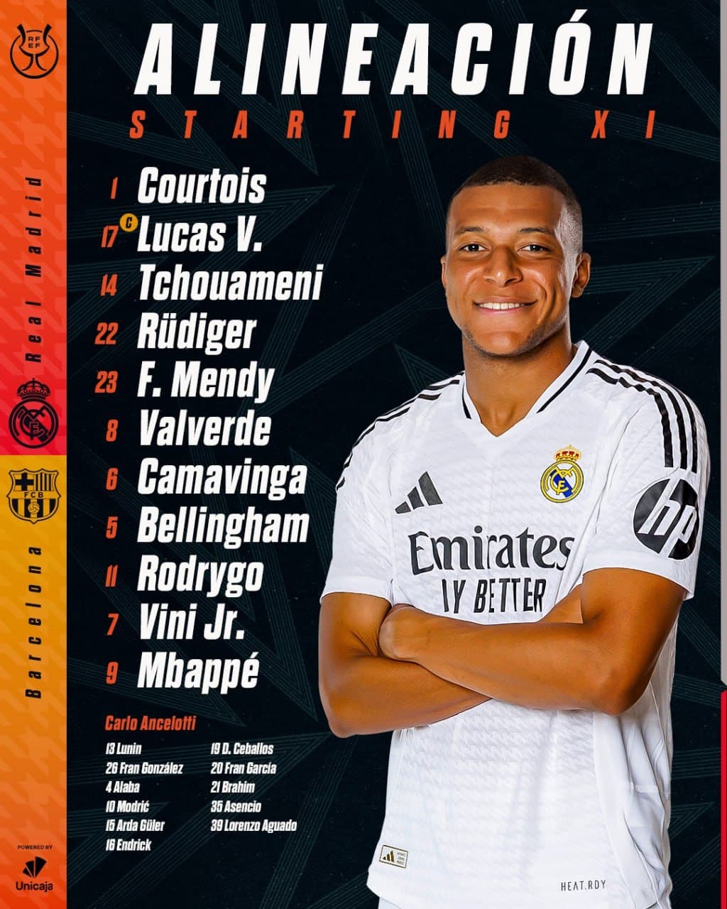 ترکیب رئال مادرید مقابل بارسلونا برای بازی الکلاسیکو امشب 23 دی 1403