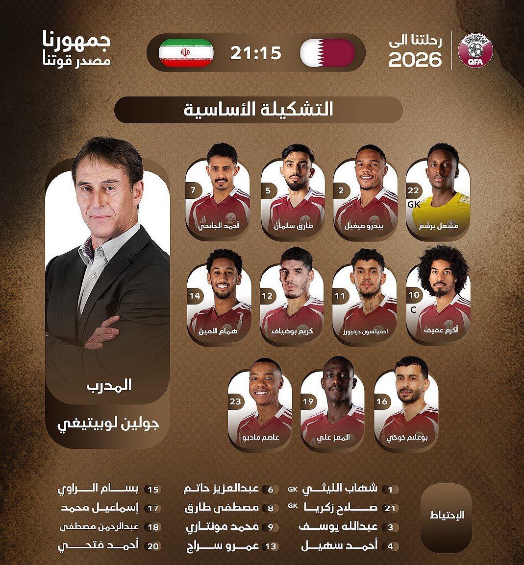 ترکیب تیم ملی قطر برابر ایران برای بازی امشب 15 خرداد 1404