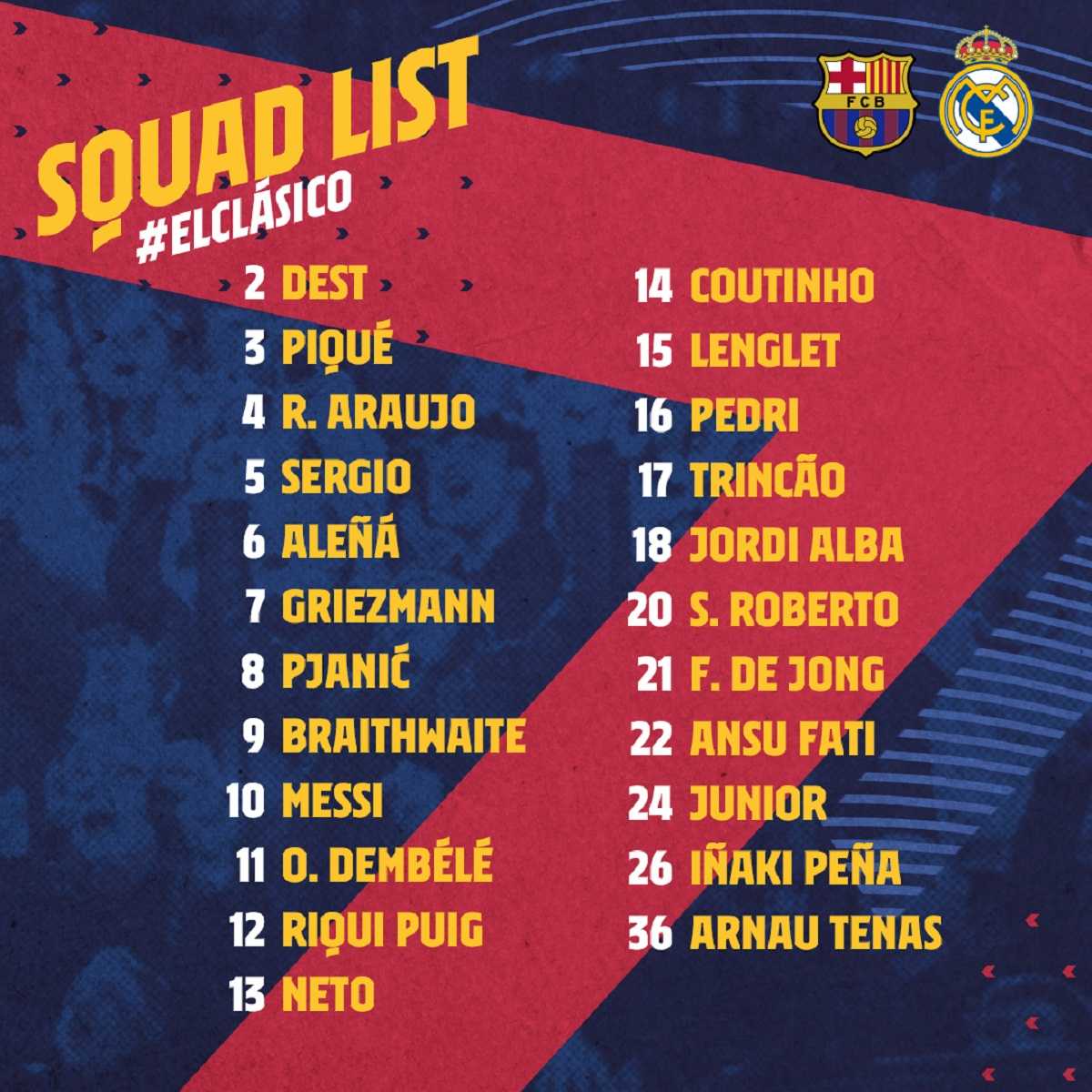 لیست بازیکنان بارسلونا برای ال کلاسیکو 2020
