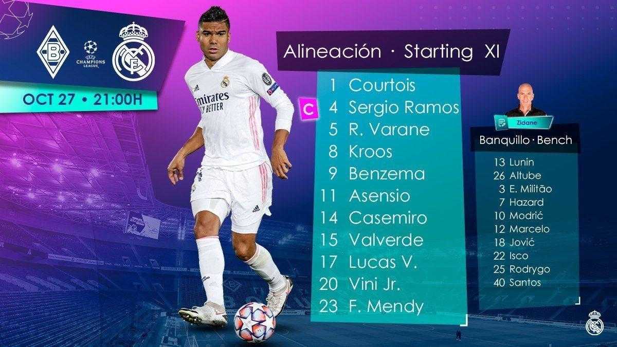 ترکیب رئال مادرید برای بازی با مونشن گلادباخ