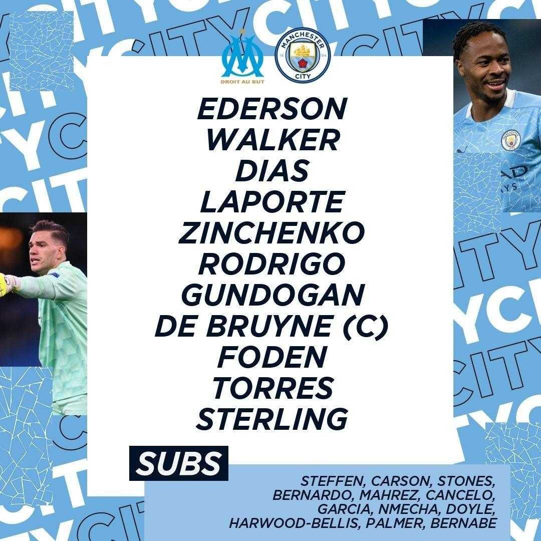 ترکیب منچسترسیتی مقابل مارسی برای بازی امشب 6 آبان 99