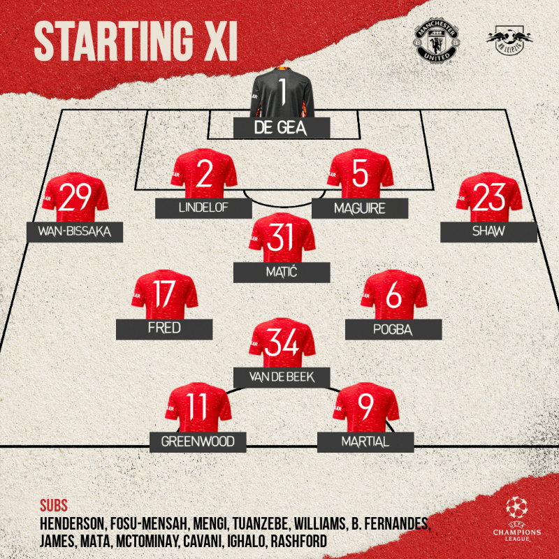 ترکیب منچستریونایتد برای بازی با لایپزیگ
