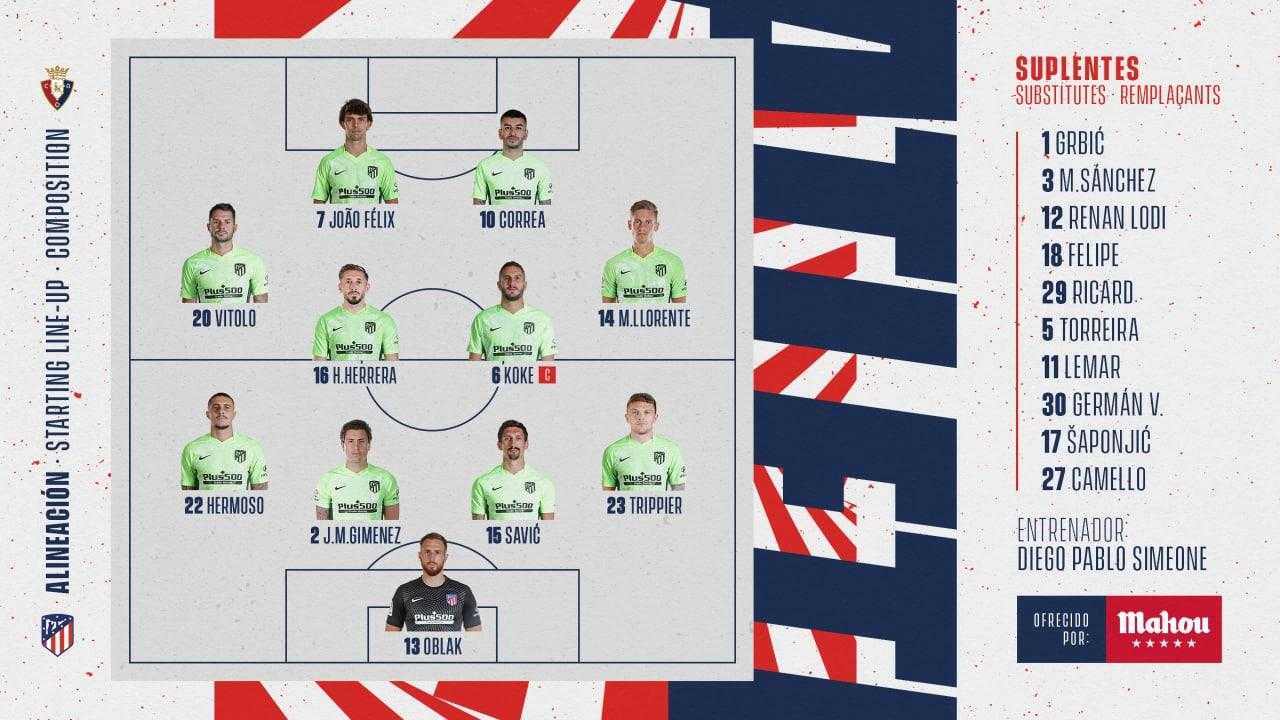 ترکیب اتلتیکو مادرید برای بازی با اوساسونا