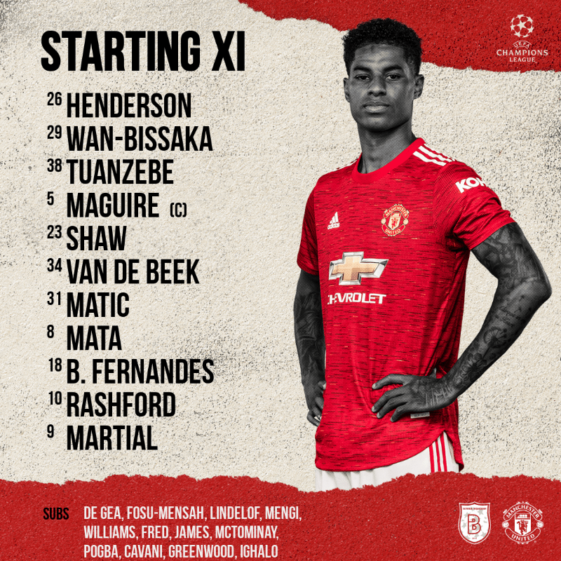 ترکیب منچستریونایتد مقابل استانبول باشاک شهیر برای بازی امشب 14 آبان 99