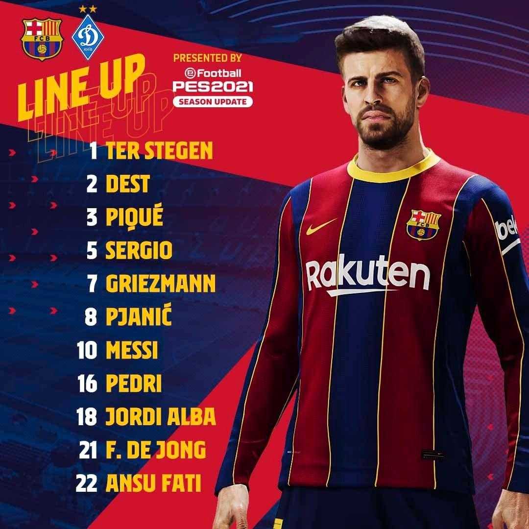 ترکیب بارسلونا برای بازی با دیناموکیف