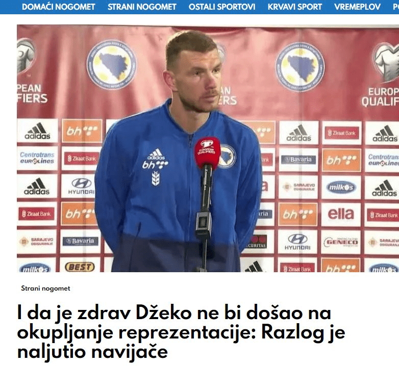 تست کرونای ژکو روز گذشته منفی شد و حضورش در اردوی تیم ملی بوسنی برای دیدار دوستانه ایران و ایتالیا در لیگ ملت های اروپا منتفی شد.