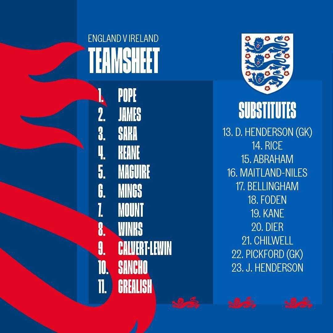 ترکیب تیم ملی انگلیس برای بازی با ایرلندپسندها: