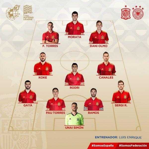 لیگ ملت های اروپا| ترکیب اسپانیا مقابل آلمان برای بازی امشب 27 آبان 99