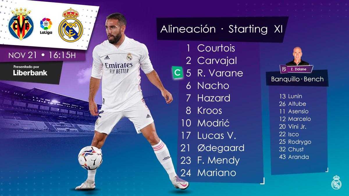 ترکیب رئال مادرید برای بازی با ویارئالپسندها: