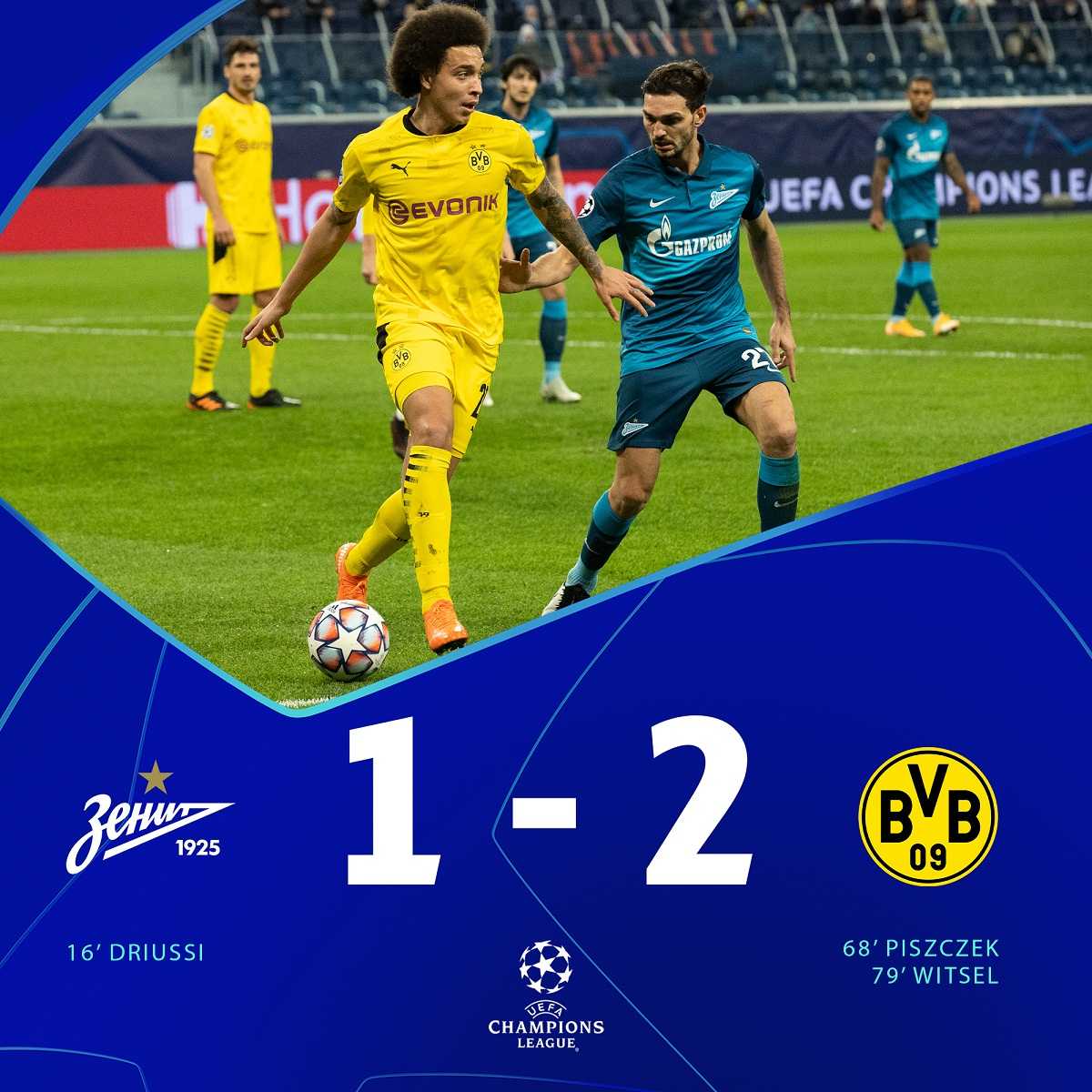 گل های این بازی را دریوسی در دقیقه 16 برای زنیت و پیشچک در دقیقه 68 و اکسل ویتسل در دقیقه 78 برای دورتموند به ثمر رساندند.