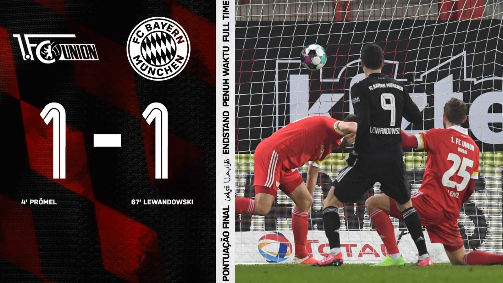گل های این بازی را پرومل در دقیقه 4 برای یونیون و روبرت لواندوفسکی در دقیقه 67 برای بایرن به ثمر رساندند.