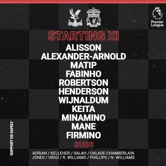 ترکیب لیورپول برای بازی با کریستال پالاسپسندها: