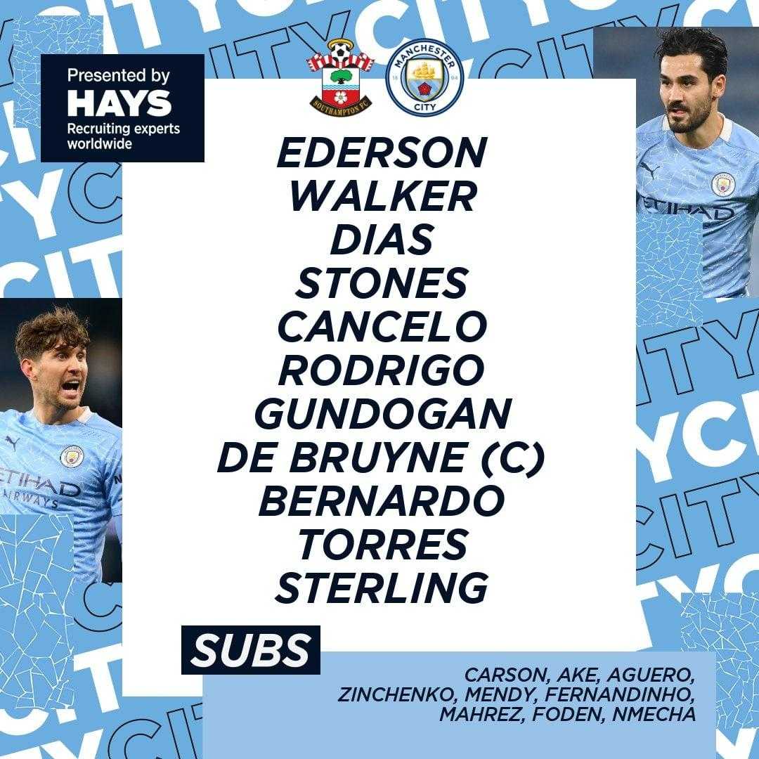 ترکیب منچستر سیتی برای بازی با ساوتهمپتون