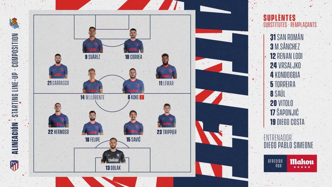 ترکیب اتلتیکومادرید برای بازی با سوسیدادپسندها: