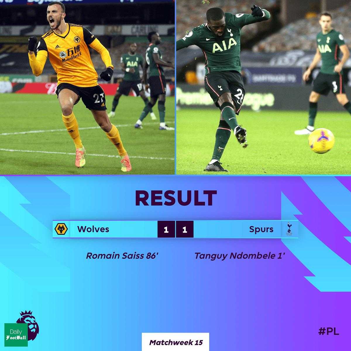 گل های این بازی را تانگوی اندومبله در دقیقه یک برای تاتنهام و روماین سایس در دقیقه 86 برای ولورهمپتون به ثمر رساندند.