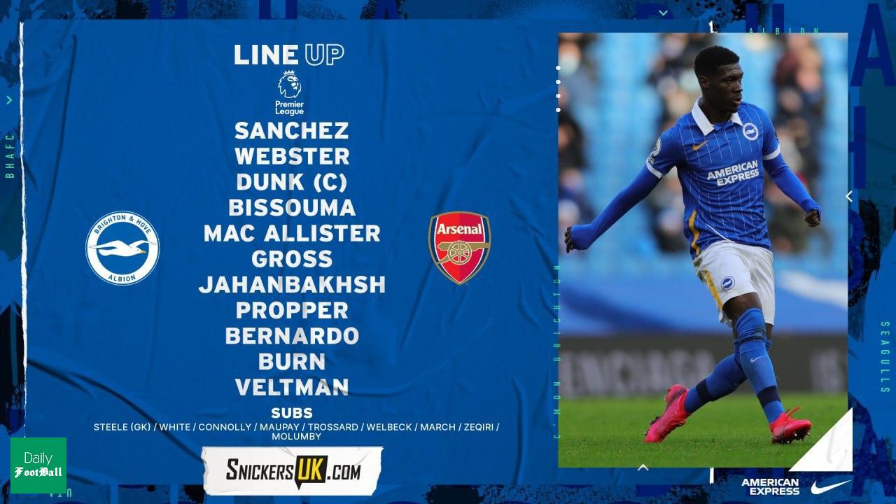 علیرضا جهانبخش، مهاجم ایرانی برایتون در ترکیب اصلی این تیم برای بازی با آرسنال قرار گرفته است.