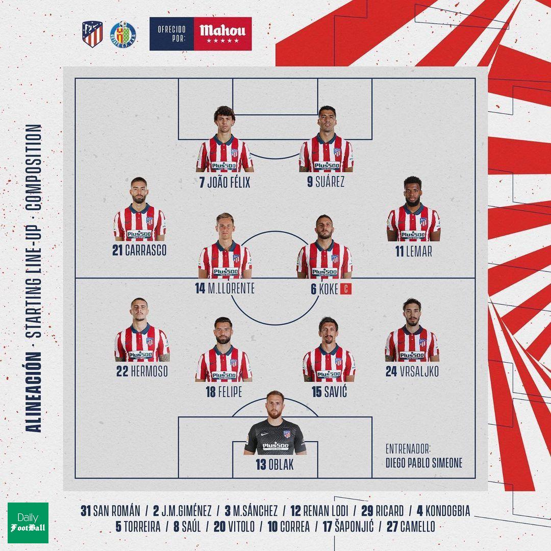 ترکیب اتلتیکومادرید برای بازی با ختافه