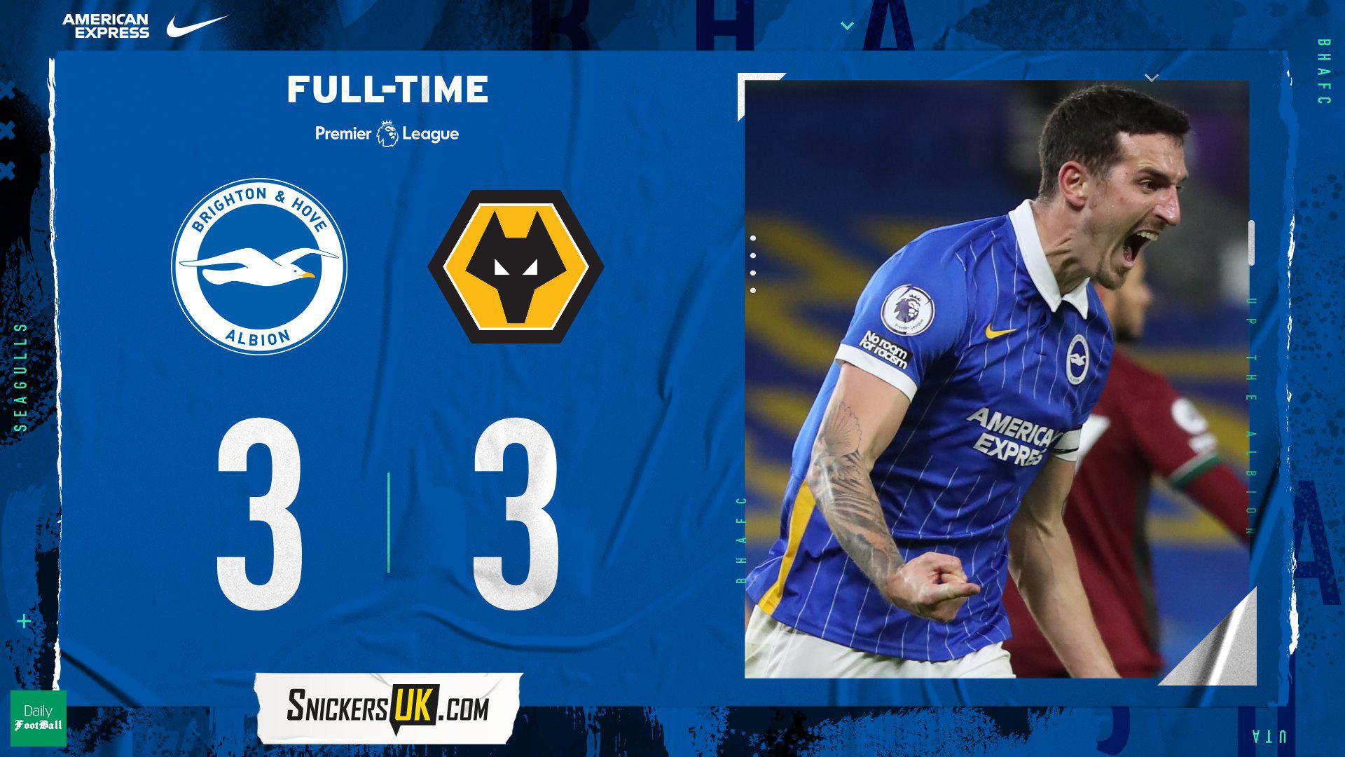 به گزارش دیلی فوتبال؛ تیم های برایتون و ولورهمپتون در چارچوب بازی های هفته هفدهم رقابت های لیگ برتر انگلیس به مصاف یکدیگر رفتند که این بازی با نتیجه تساوی 3 بر 3 به پایان رسید.