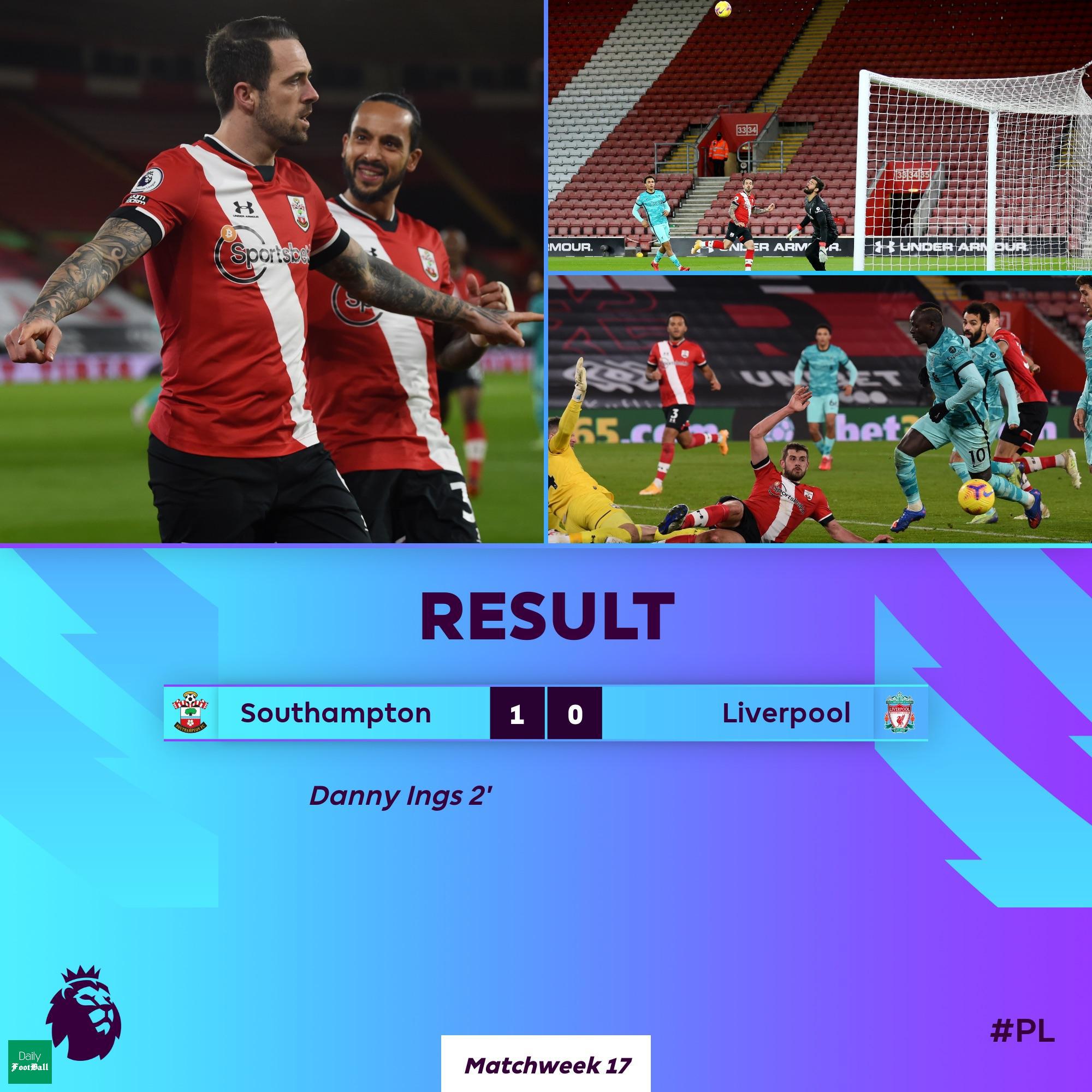 به گزارش دیلی فوتبال؛ تیم های ساوتهمپتون و لیورپول در چارچوب بازی های هفته هفدهم رقابت های لیگ برتر انگلیس به مصاف یکدیگر رفتند که این بازی با نتیجه یک بر صفر به سود ساوتهمپتون به پایان رسید.