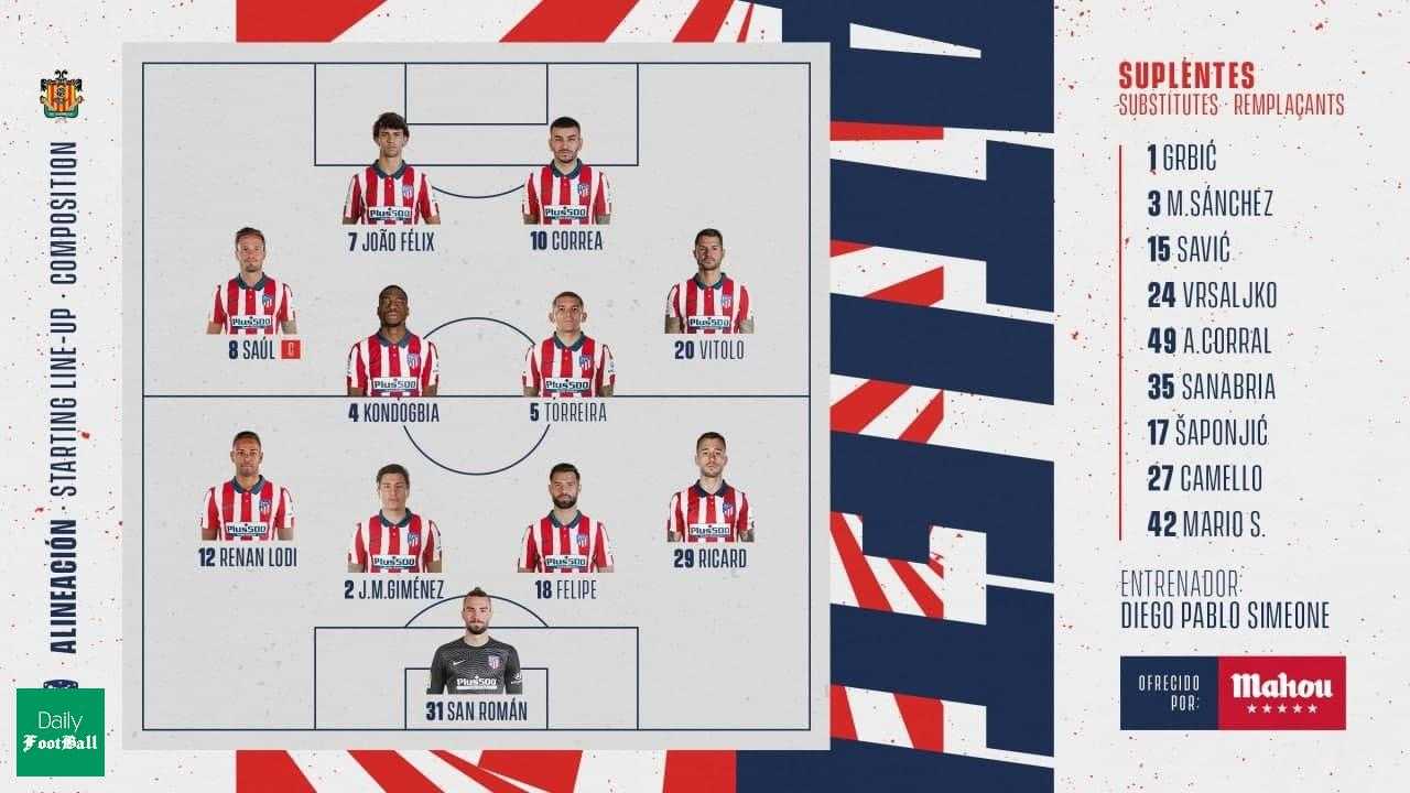 ترکیب اتلتیکومادرید برای بازی با کرنیاپسندها: