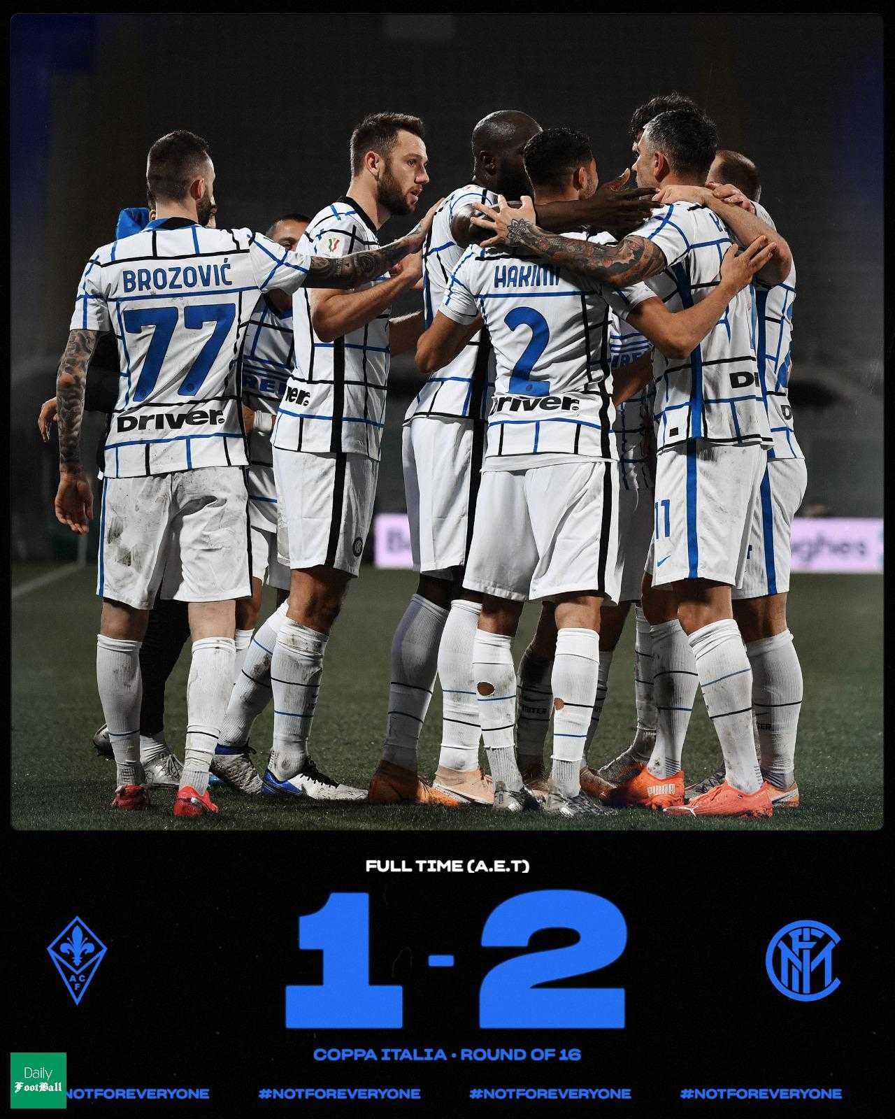به گزارش دیلی فوتبال؛ تیم های فیورنتینا و اینتر در چارچوب بازی های مرحله یک هشتم نهایی رقابت های جام حذفی ایتالیا به مصاف یکدیگر رفتند که این بازی در پایان وقت های قانونی و اضافه با نتیجه 2 بر یک به سود اینترمیلان به پایان رسید.