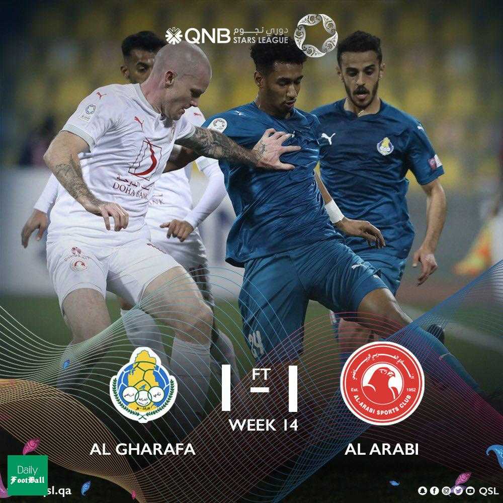 به گزارش دیلی فوتبال؛ تیم های الغرافه و العربی در چارچوب بازی های هفته چهاردهم رقابت های لیگ ستارگان قطر به مصاف یکدیگر رفتند که این بازی با نتیجه تساوی یک بر یک به پایان رسید.