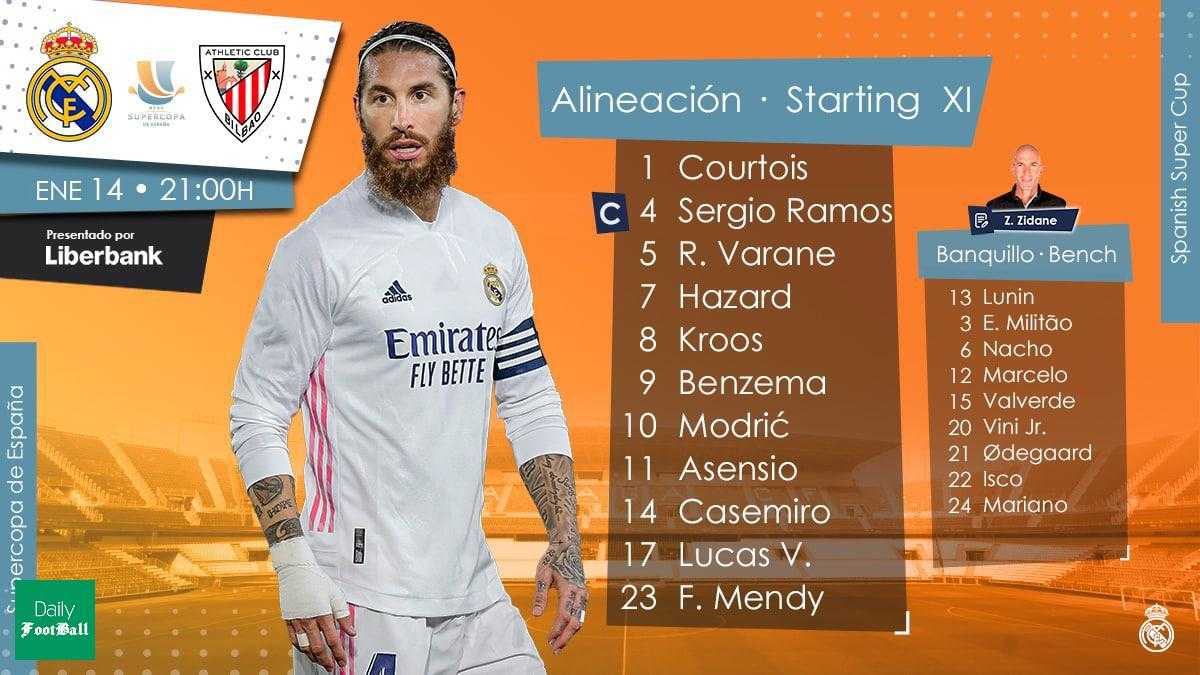 سوپرجام اسپانیا| ترکیب رئال مادرید مقابل اتلتیک بیلبائو برای بازی امشب 25 دی 99