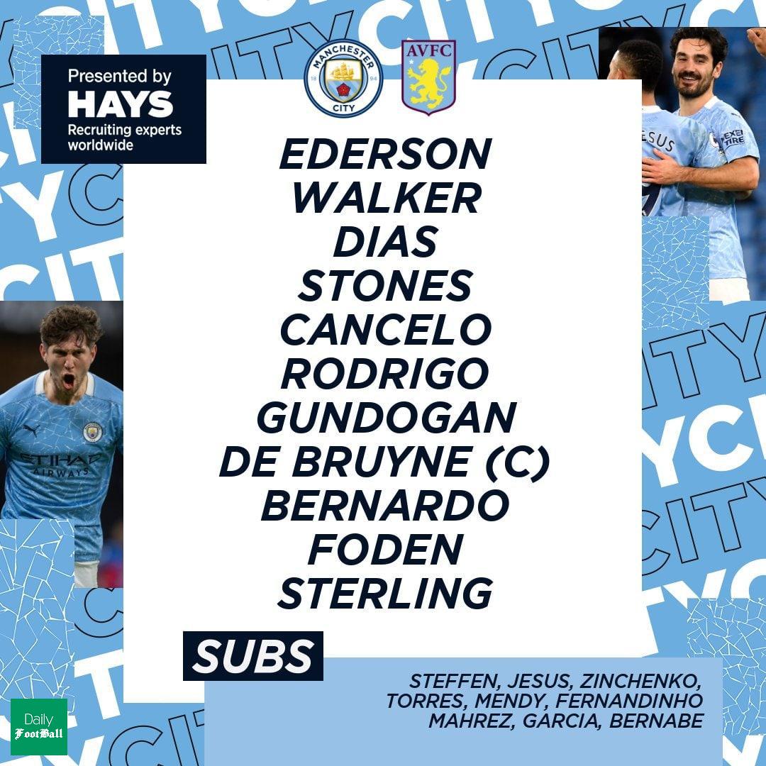 ترکیب منچستر سیتی برای بازی با استون ویلاپسندها: