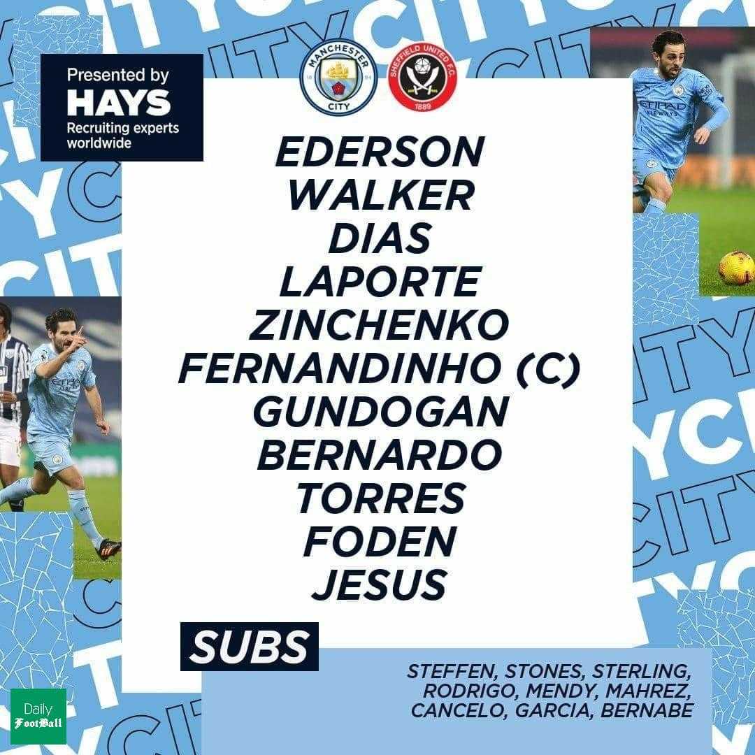 ترکیب منچستر سیتی برای بازی با شفیلد یونایتدپسندها: