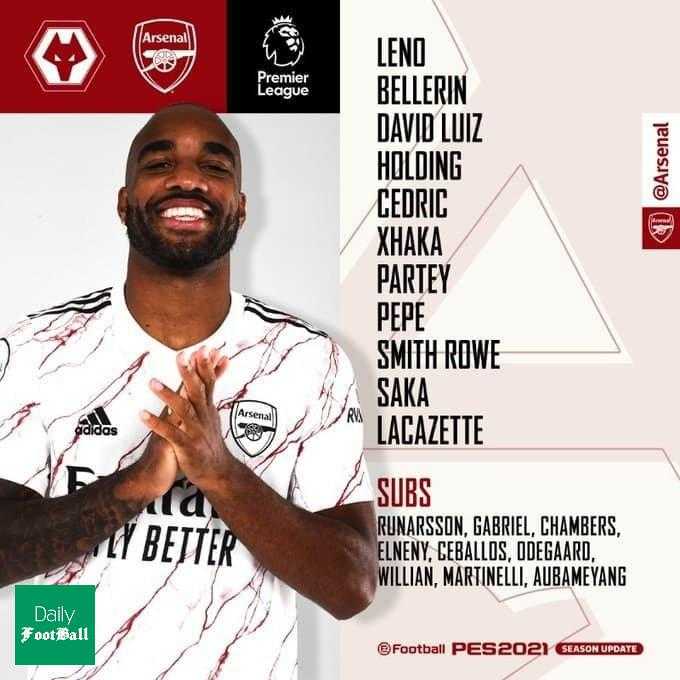 ترکیب آرسنال برای بازی با ولورهمپتونپسندها:
