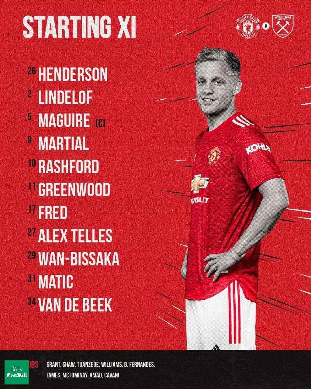 جام حذفی انگلیس| ترکیب منچستریونایتد مقابل وستهام برای بازی امشب 21 بهمن 99