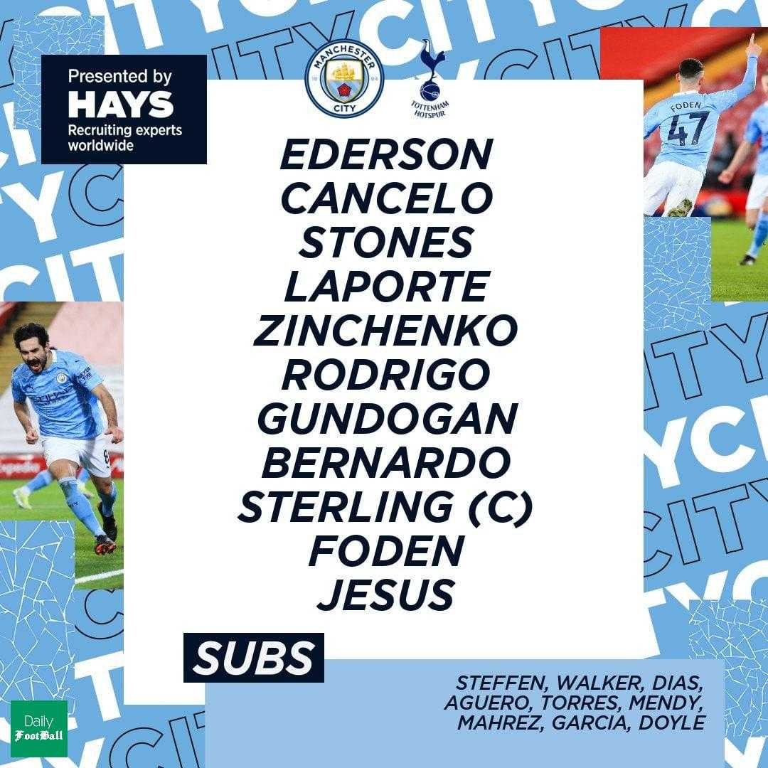 ترکیب منچستر سیتی برای بازی با تاتنهام
