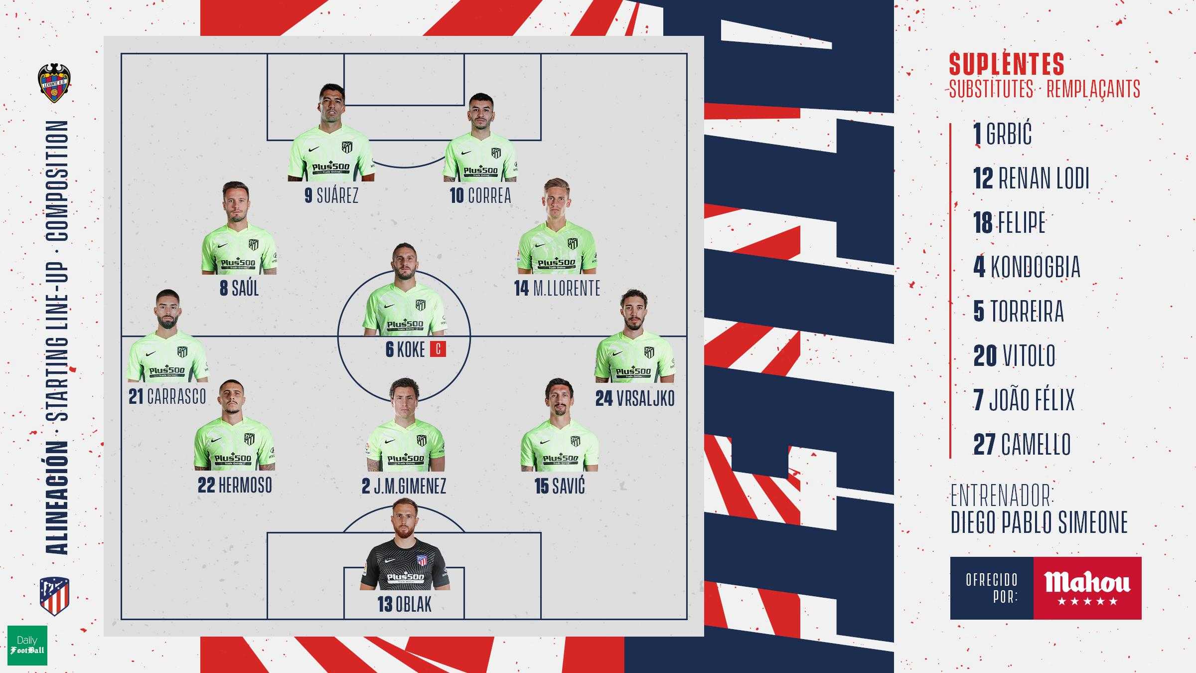 ترکیب اتلتیکومادرید برای بازی با لوانتهپسندها: