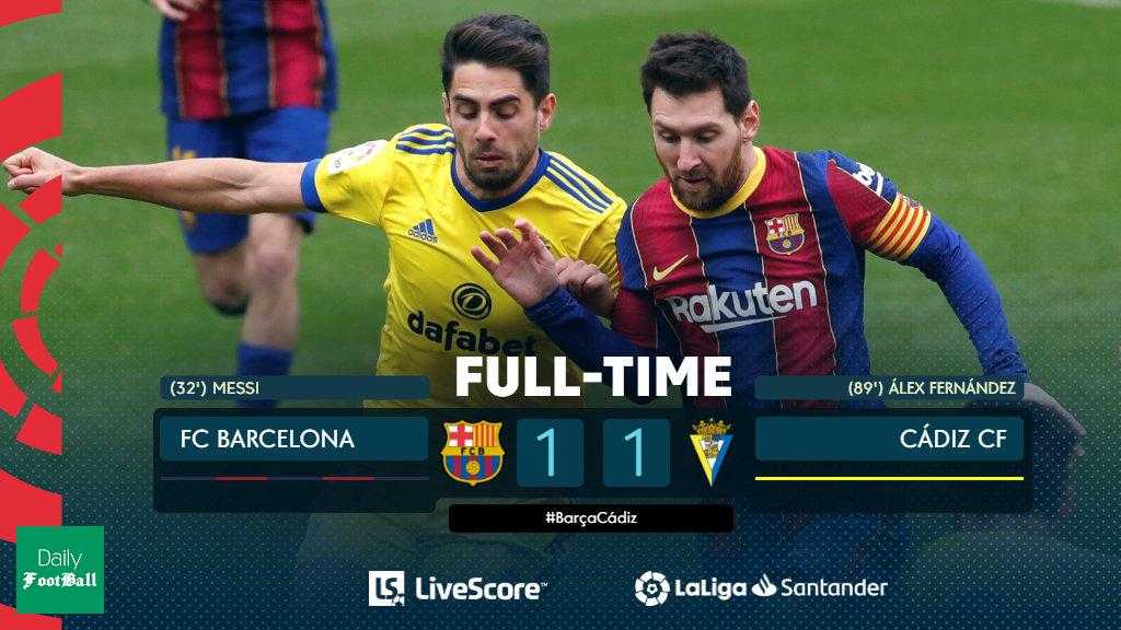 نتیجه بازی بارسلونا و کادیز| توقف بارسا در نیوکمپ