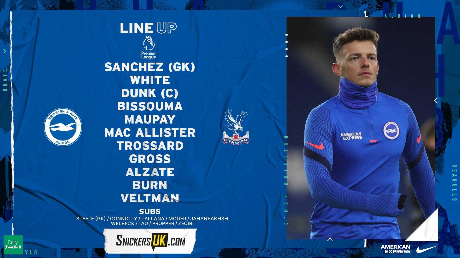 علیرضا جهانبخش، هافبک ایرانی برایتون در ترکیب اصلی این تیم برای بازی با کریستال پالاس قرار نگرفته و نیمکت نشین است.