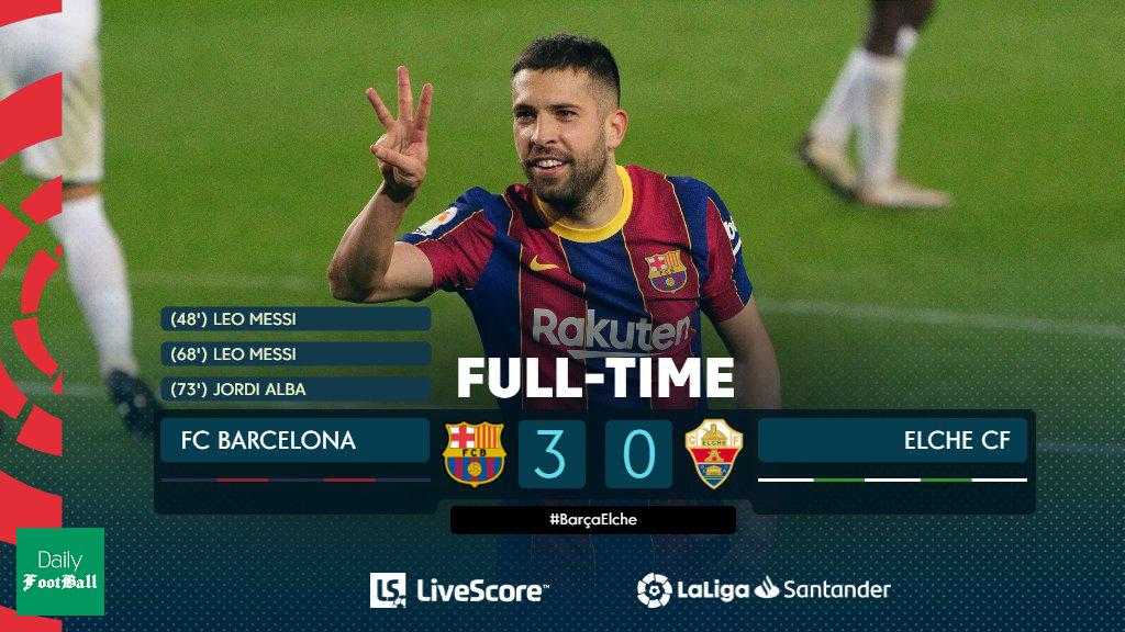 با این نتیجه بارسا 50 امتیازی شد و همچنان در رتبه سوم جدول رده بندی لالیگا قرار دارد.