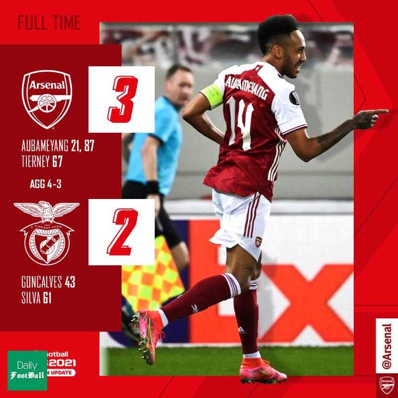 به گزارش دیلی فوتبال؛ تیم های آرسنال و بنفیکا در چارچوب بازی های دور برگشت مرحله یک شانزدهم نهایی مسابقات لیگ اروپا به مصاف یکدیگر رفتند که این بازی با نتیجه 3 بر 2 به سود توپچی های لندن به پایان رسید.