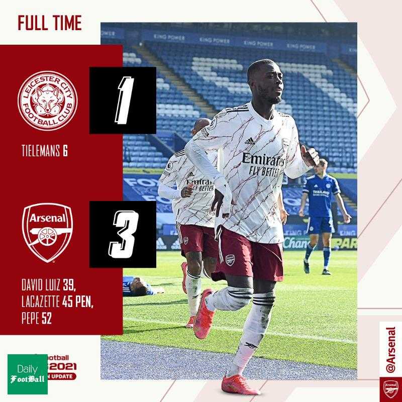 به گزارش دیلی فوتبال؛ تیم های لسترسیتی و آرسنال در چارچوب بازی های هفته بیست و ششم مسابقات لیگ برتر انگلیس به مصاف یکدیگر رفتند که این بازی با نتیجه 3 بر یک به سود توپچی های لندن به پایان رسید.