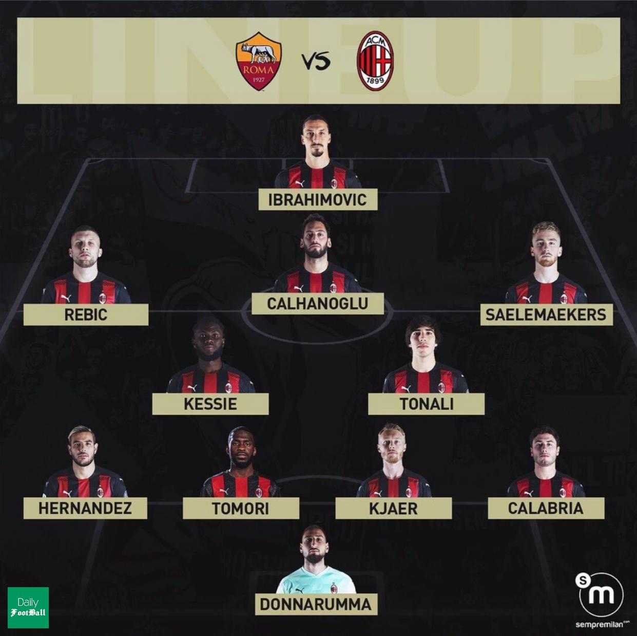 ترکیب آث میلان برای بازی با آاس رم