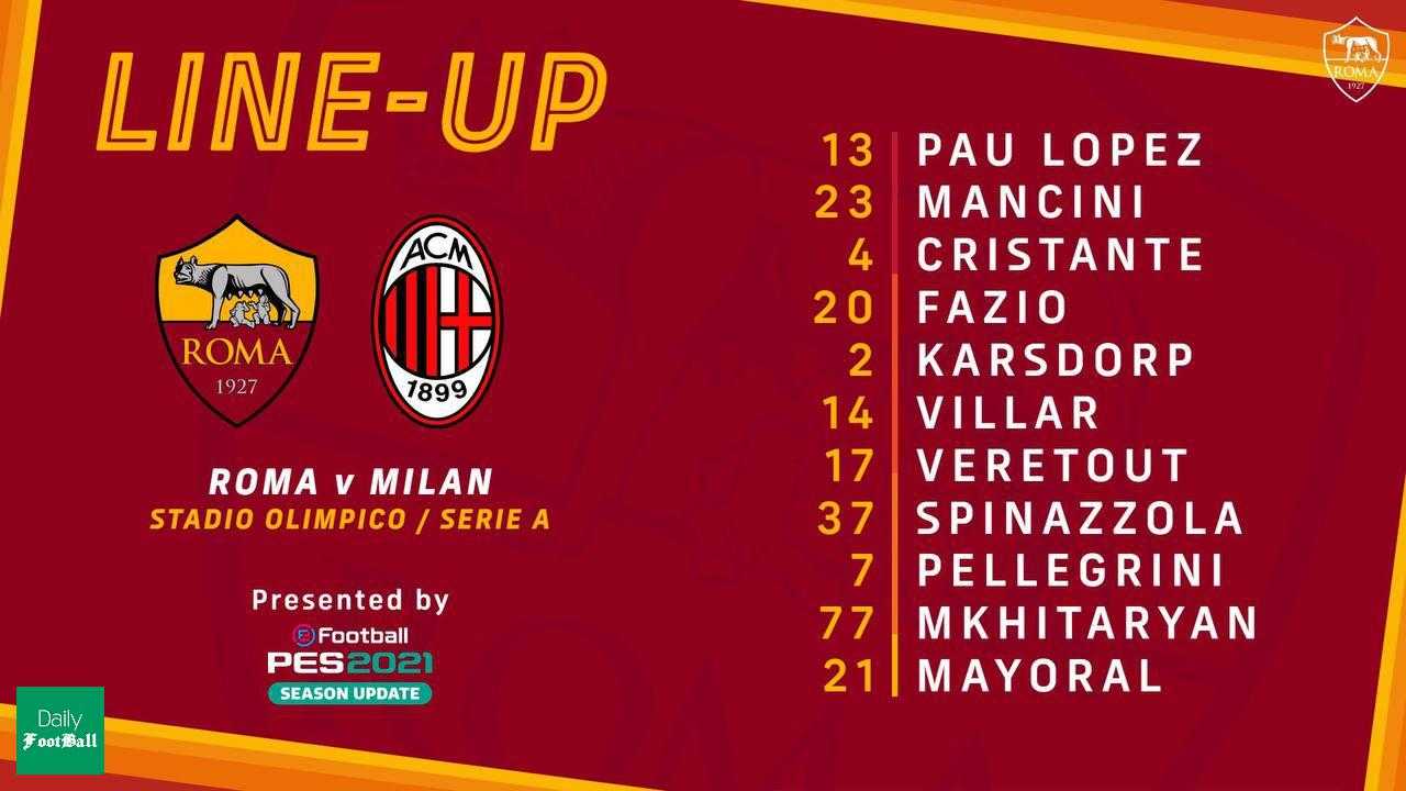 به گزارش دیلی فوتبال؛ در چارچوب بازی های هفته بیست و چهارم مسابقات سری آ از ساعت 23:15 امشب یکشنبه 10 اسفند 99 رم میزبان میلان خواهد بود.