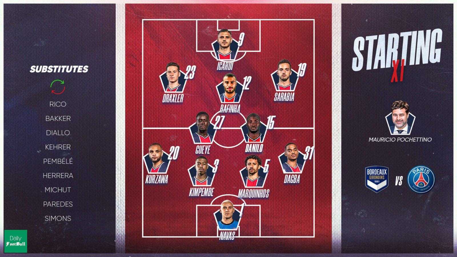 ترکیب پی اس جی برای بازی با بوردوپسندها: