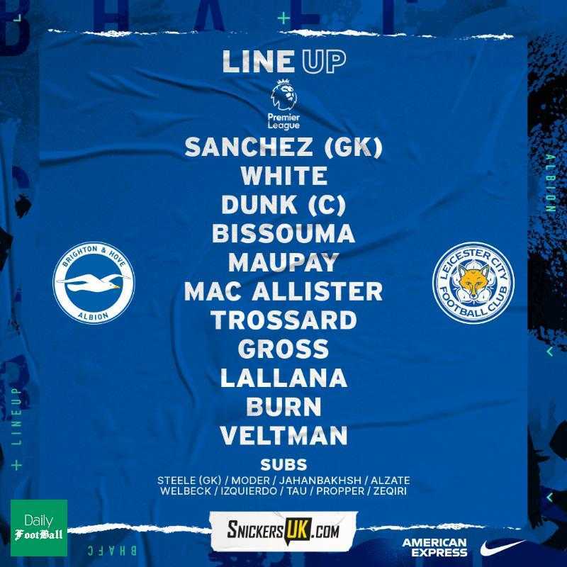 علیرضا جهانبخش، هافبک ایرانی برایتون در ترکیب اصلی این تیم برای بازی با لستر سیتی قرار نگرفته و نیمکت نشین است.