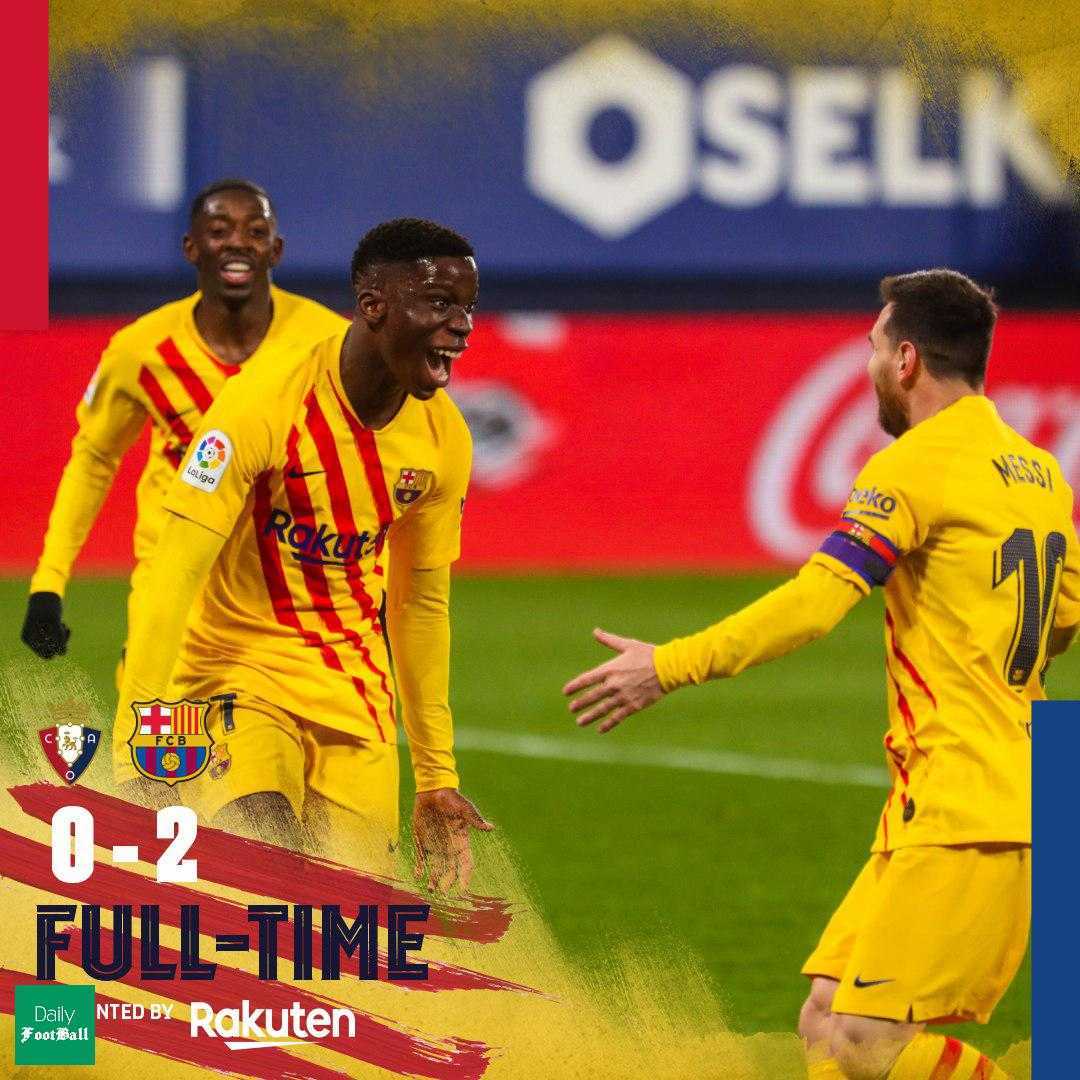 به گزارش دیلی فوتبال؛ تیم های اوساسونا و بارسلونا در چارچوب بازی های هفته بیست و ششم مسابقات لالیگا به مصاف یکدیگر رفتند که این بازی با نتیجه 2 بر صفر به سود شاگردان رونالد کومان به پایان رسید.