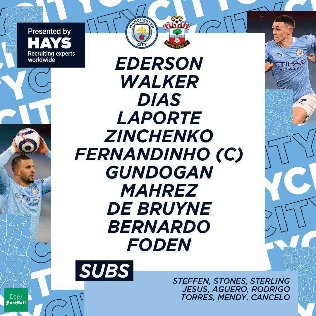 ترکیب منچستر سیتی برای بازی با ساوتهمپتونپسندها: