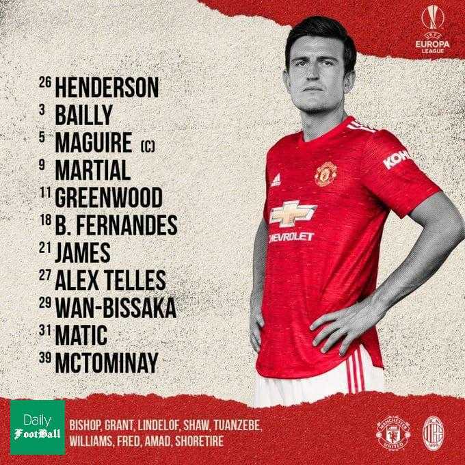 ترکیب منچستر یونایتد برای بازی با آث میلانترکیب اصلی میلان