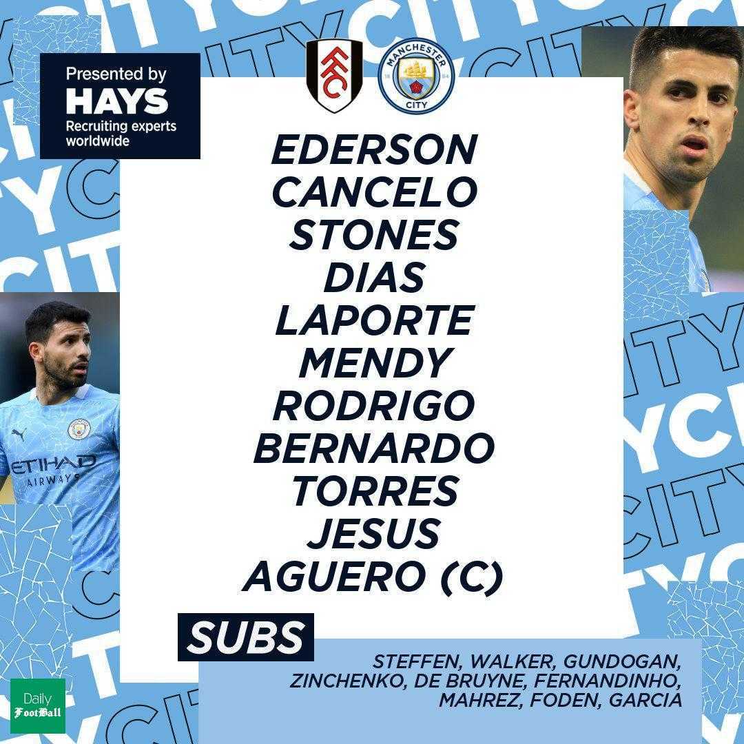 ترکیب منچستر سیتی برای بازی با فولامپسندها: